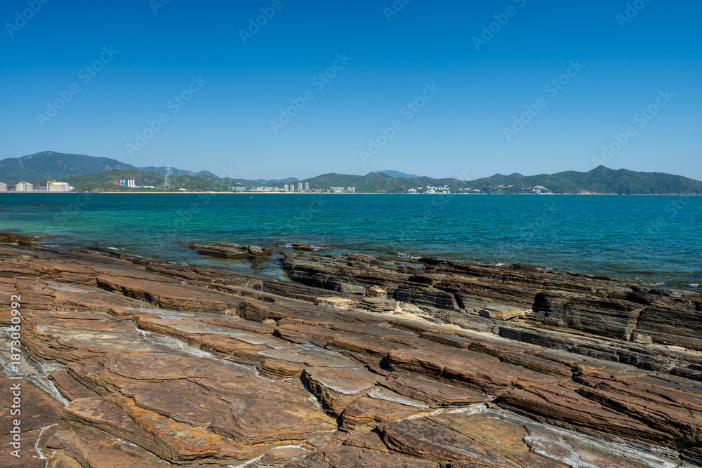 Fototapeta Layered Siltstone Coastline at Tung Ping Chau