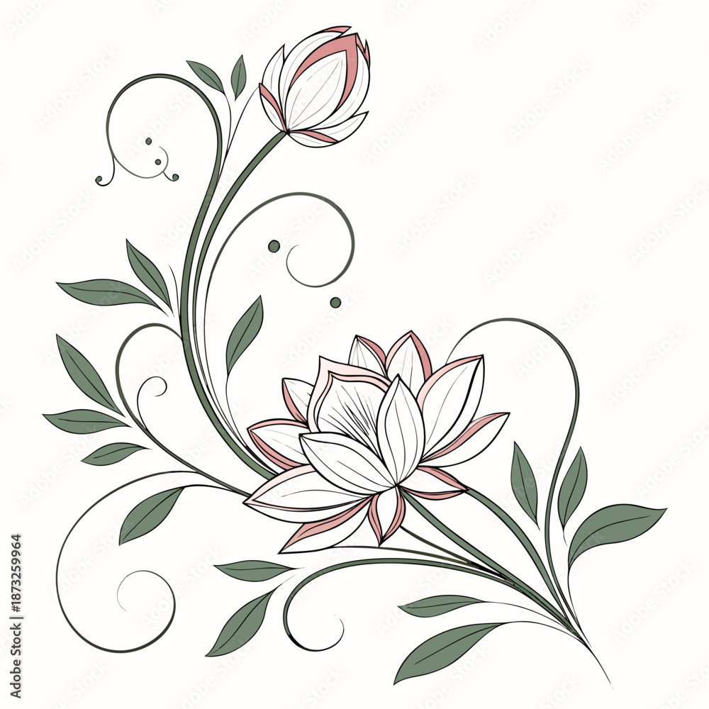 Fototapeta Delicate flower illustration with swirling vines