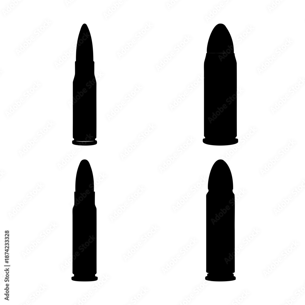 Fototapeta Four distinct bullet silhouettes rendered in black on a clean white background