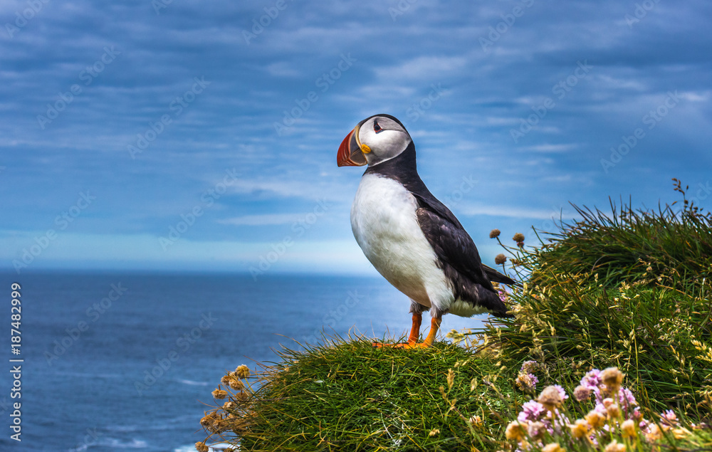 Fototapeta Puffins on the Latrabjarg cliffs, Western Fjords, Iceland