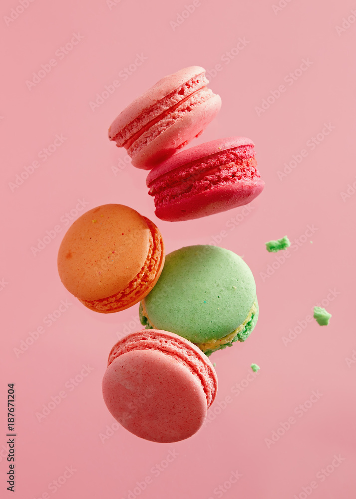Fototapeta Colorful macarons cakes. Small French cakes.
