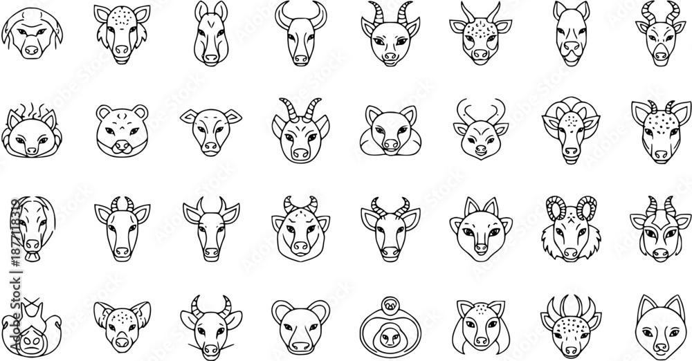 Fototapeta Collection of Animal Head Icons: Zodiac, Farm, and Wild Mammals
