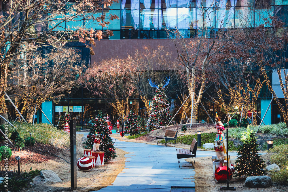 Fototapeta Christmas decorations in the mall's park