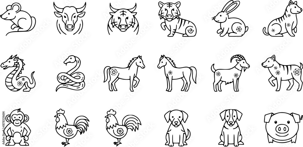 Fototapeta Chinese Zodiac Animals Icons
