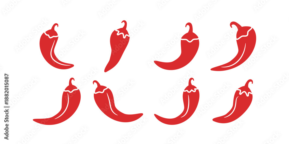 Fototapeta A collection of chili pepper icons in a simple red silhouette style, with different shapes and designs