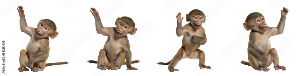 Fototapeta Four Baby Monkey Poses PNG Set Isolated on White Background - Realistic Macaque