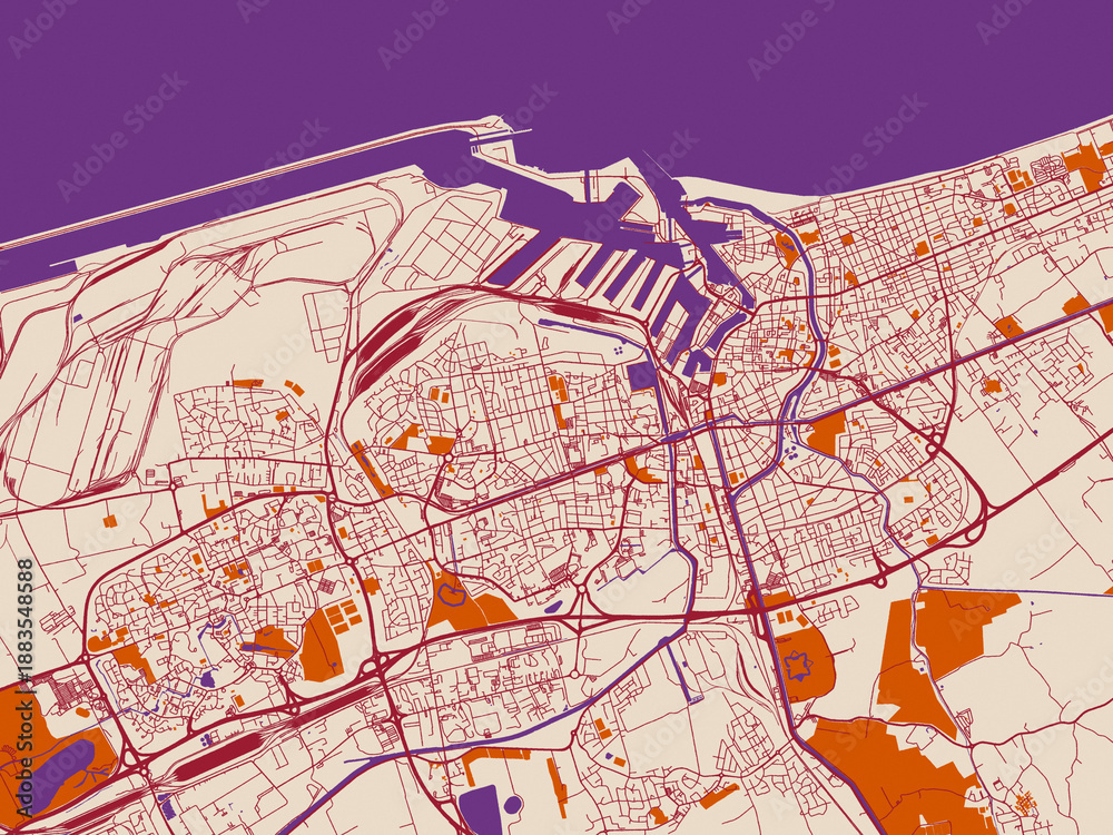 Fototapeta City map of Dunkirk, France – burgundy linework on cream