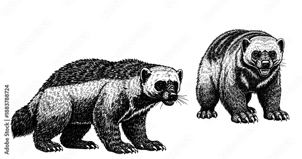 Fototapeta Wolverine engraving illustration for rugged premium brand identity