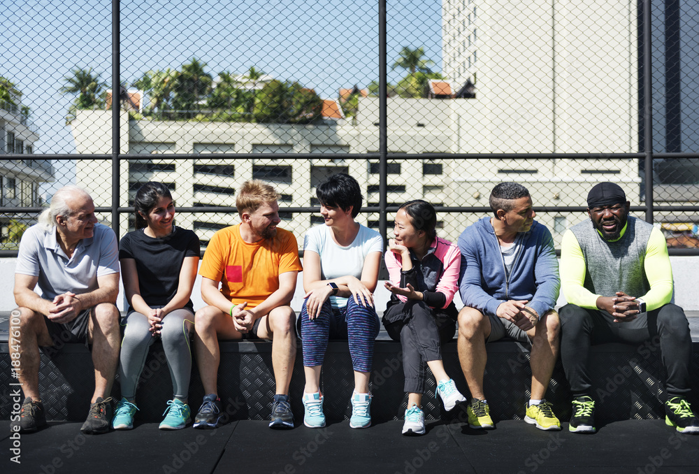 Fototapeta Group of diverse athletes sitting together