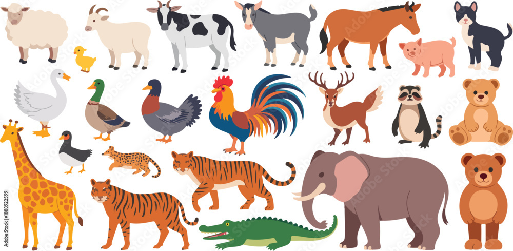 Fototapeta Cute Animal Vector Set Farm, Wild, Jungle, and Sea Creatures