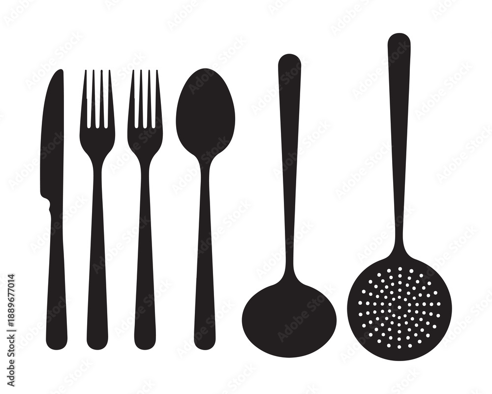 Fototapeta Minimalist kitchen and dining utensil silhouettes including a knife, forks, spoo