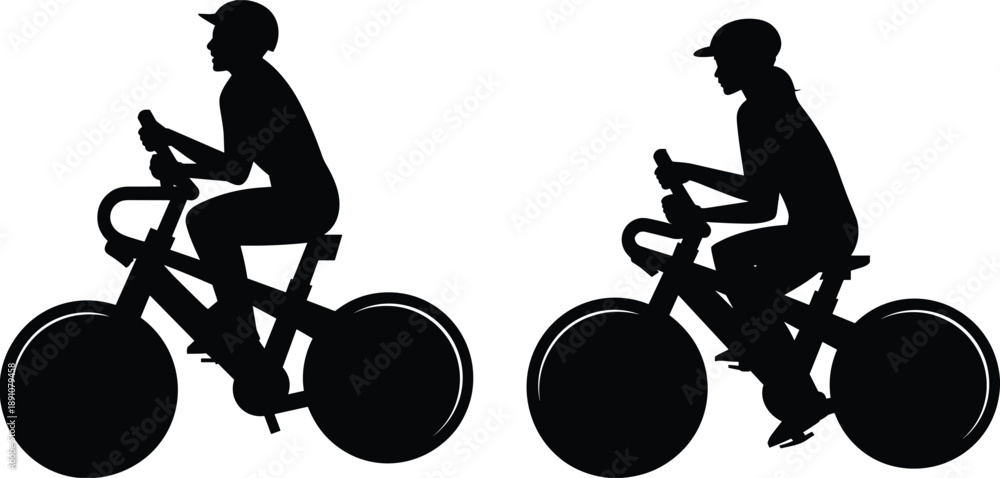 Fototapeta Two cyclist silhouettes riding road bicycles wearing helmets endurance fitness s