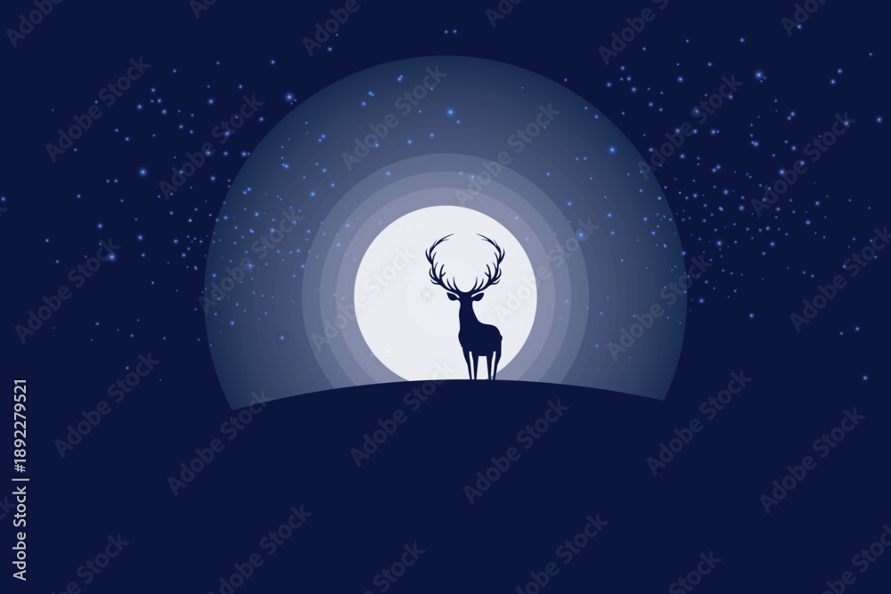 Fototapeta Moonlit Stag Silhouette in a Starry Night