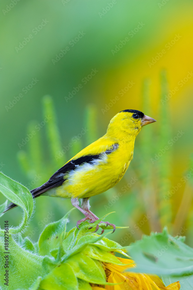 Fototapeta 01640-16607 American Goldfinch (Spinus tristis) male on Sunflower Sam Parr St