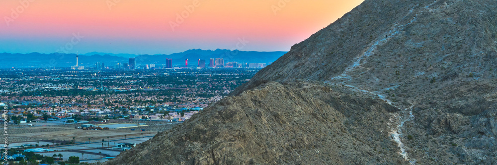 Fototapeta Aerial Las Vegas Strip Lone Mountain Panorama at Golden Hour Nevada