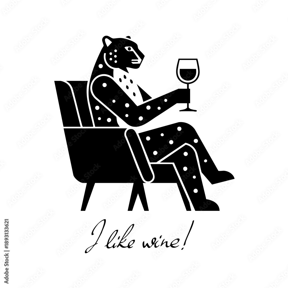Fototapeta Cat leopard parrot sparrow penguin anteater frog koala glass of wine