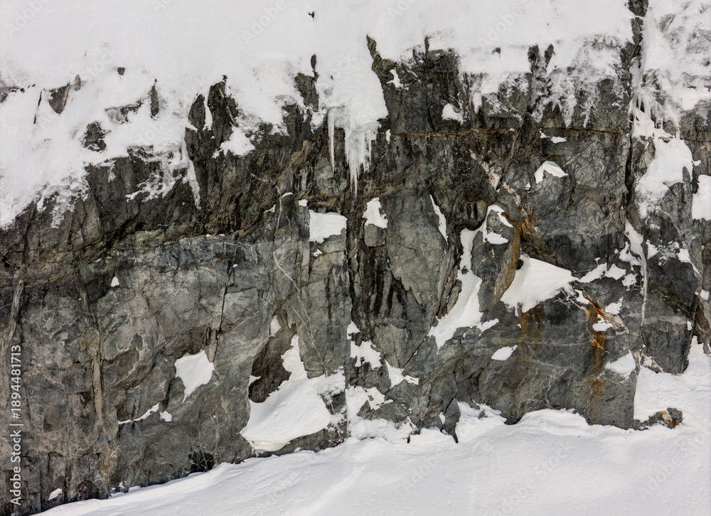 Fototapeta Snowy Mountain Cliffs and Snow Field in Rugged Terrain, BC, Canada Landscape Alp