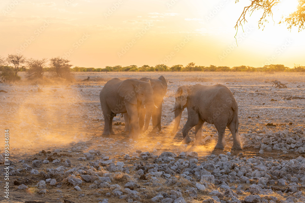 Fototapeta Etosha National Park in Namibia is famous for its vast, shimmering salt pan, open savanna landscapes, and remarkable wildlife diversity
