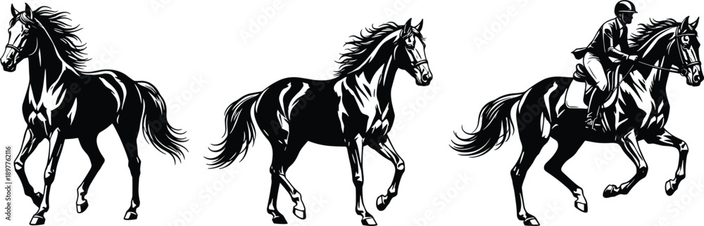 Fototapeta Horse riding and galloping silhouette collection featuring equestrian sport jock