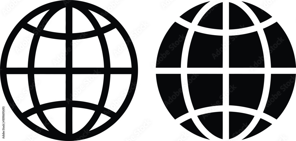 Fototapeta Two contrasting globe icons with different line styles and shading