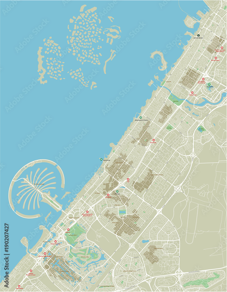 Fototapeta Vector city map of Dubai with well organized separated layers.
