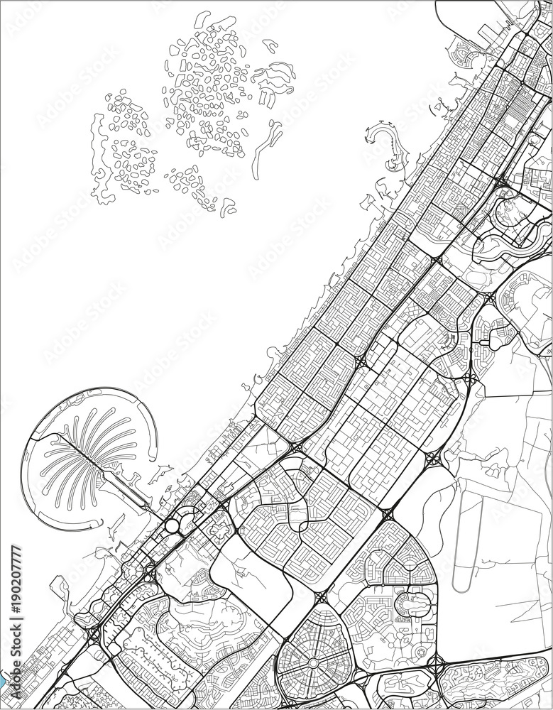 Fototapeta Black and white vector city map of Dubai with well organized separated layers
