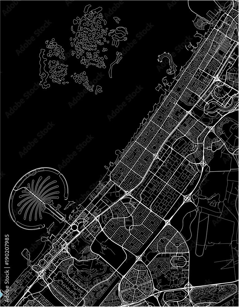 Fototapeta Black and white vector city map of Dubai with well organized separated layers