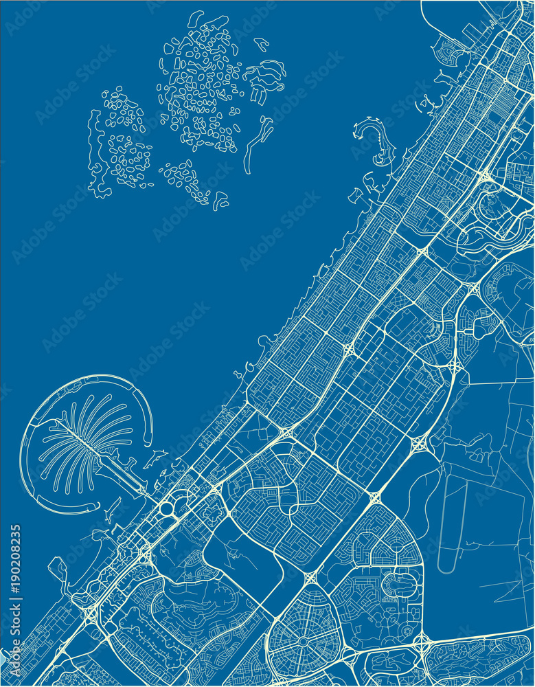 Fototapeta Blue and White vector city map of Dubai with well organized separated layers