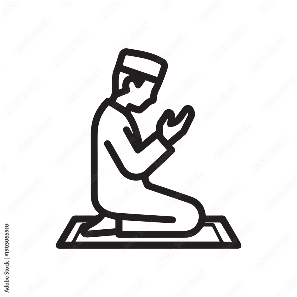 Fototapeta A man in a simple outfit is kneeling on a mat in a prayerful position