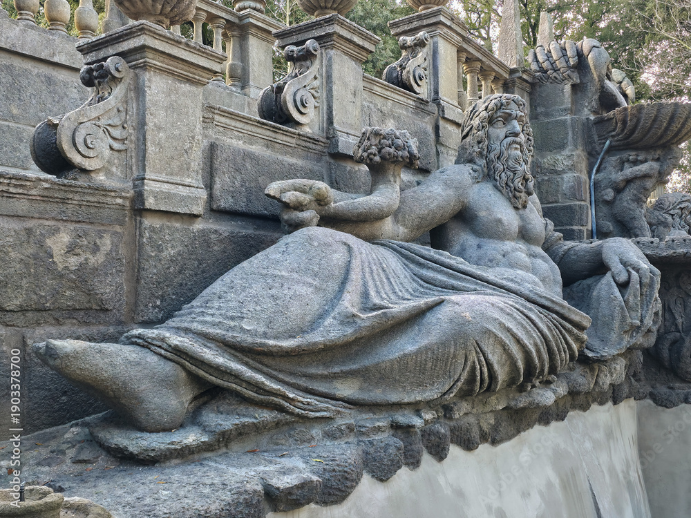 Fototapeta This reclining stone statue in Villa Lante represents a river god, likely the Ar