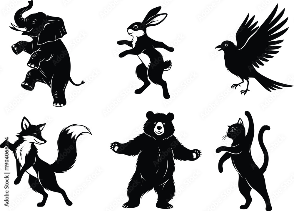 Fototapeta Dancing animal silhouette vector, cute wild animals illustration including eleph