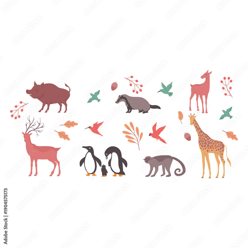 Fototapeta Wild Animals Vector Silhouette Collection Set