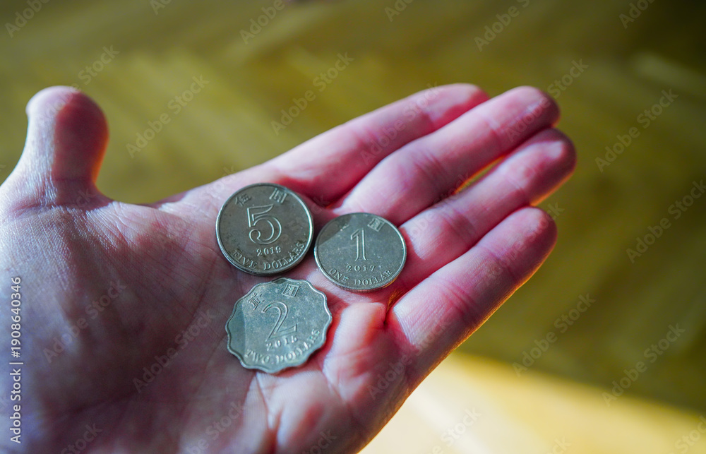 Fototapeta Coins of the Hong Kong dollar on hand