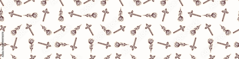 Fototapeta Christian cross seamless vector border