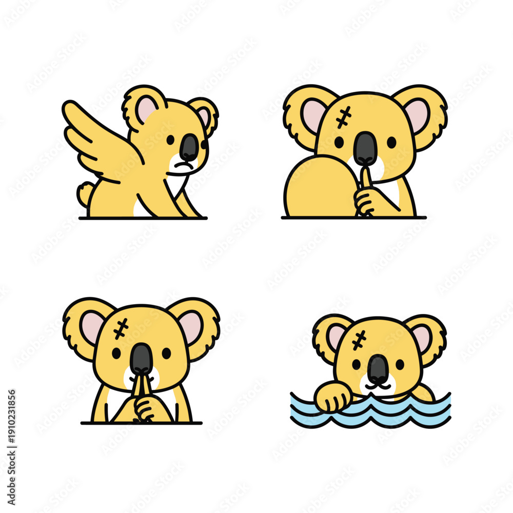 Fototapeta Cute cartoon koala with different emotions and actions in a simple design style