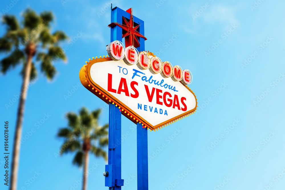 Fototapeta Welcome to Fabulous Las Vegas Sign With Plane Arriving
