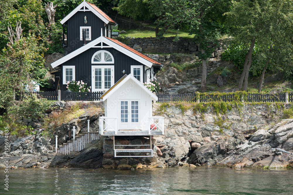Fototapeta Strand- und Badehäser am Oslofjord