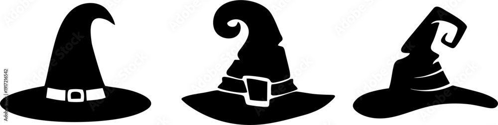 Fototapeta Witch Hat Silhouettes Collection for Halloween and Magic Decoration