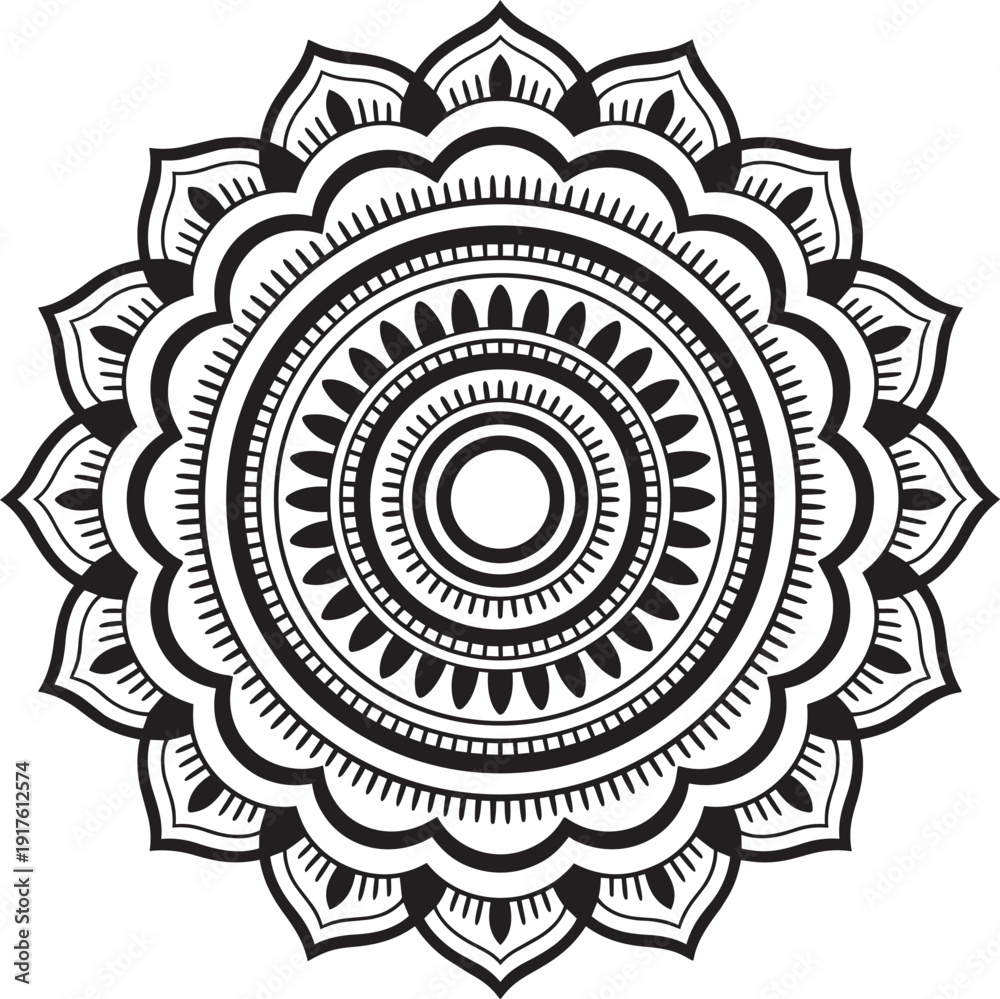 Fototapeta Black silhouette of an elaborate circular mandala pattern with intricate floral