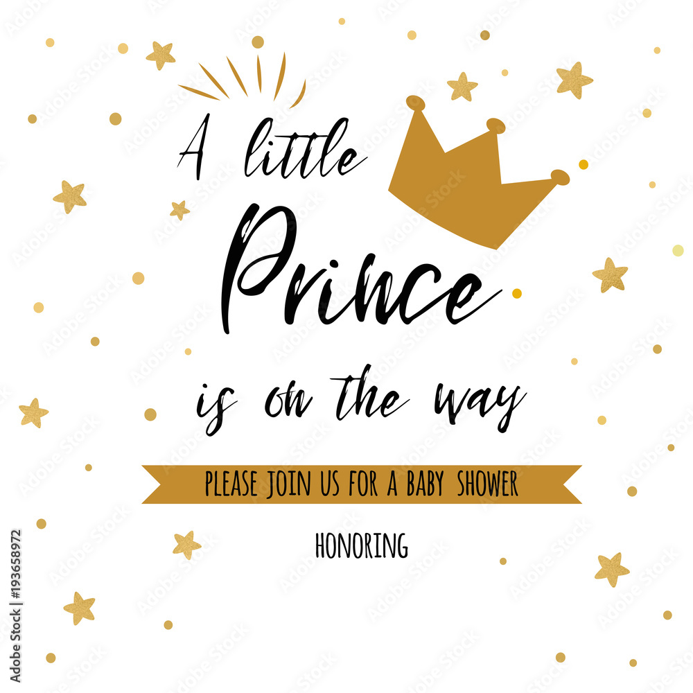 Fototapeta Text a little prince is on the way with gold stars, golden crown