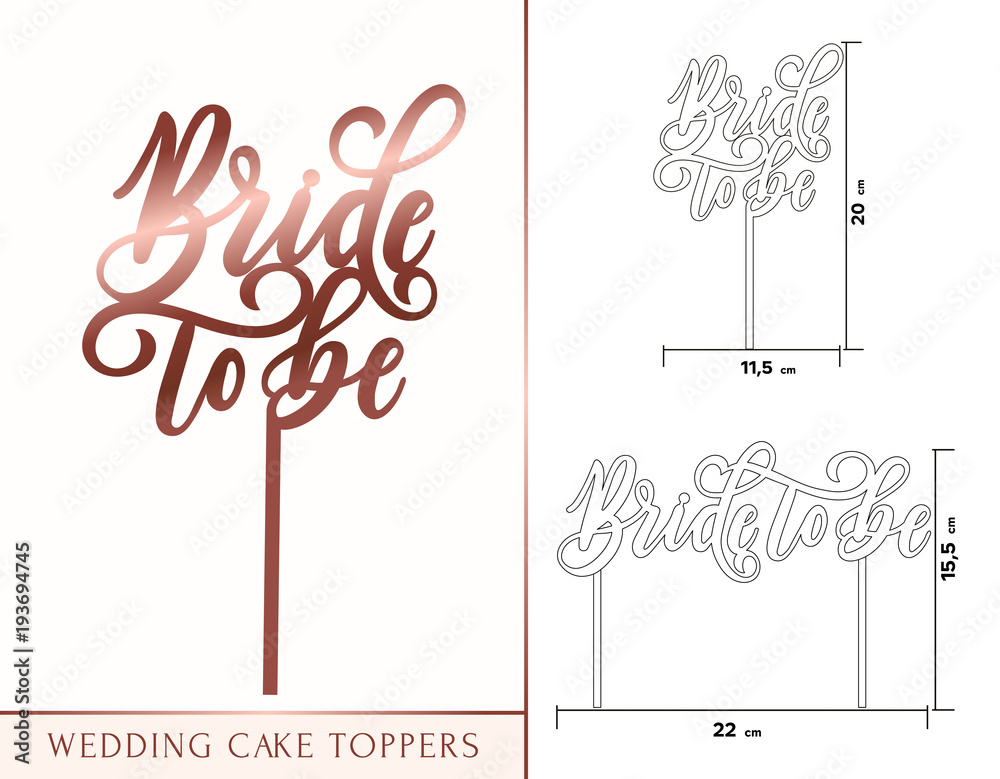 Fototapeta .Bride to be cake toppers for laser or milling cut. Wedding rose gold lettering.