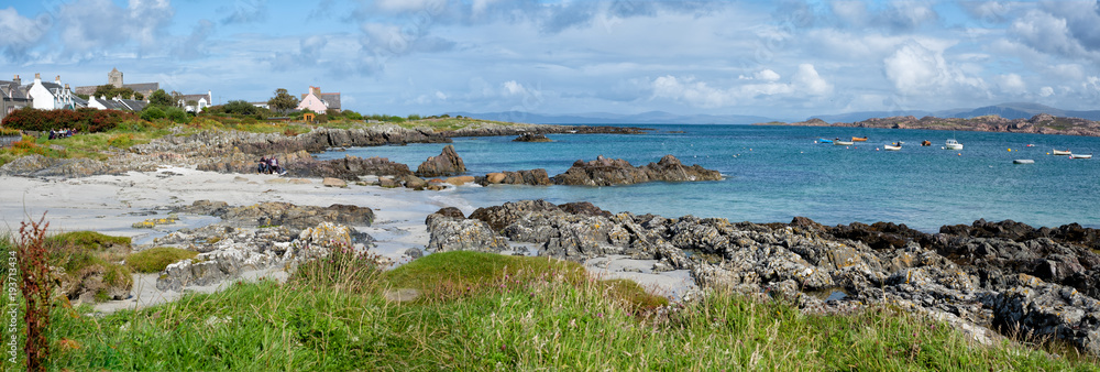 Fototapeta A view of the beachfront and turquoise water on the Isle of Iona in Soctland