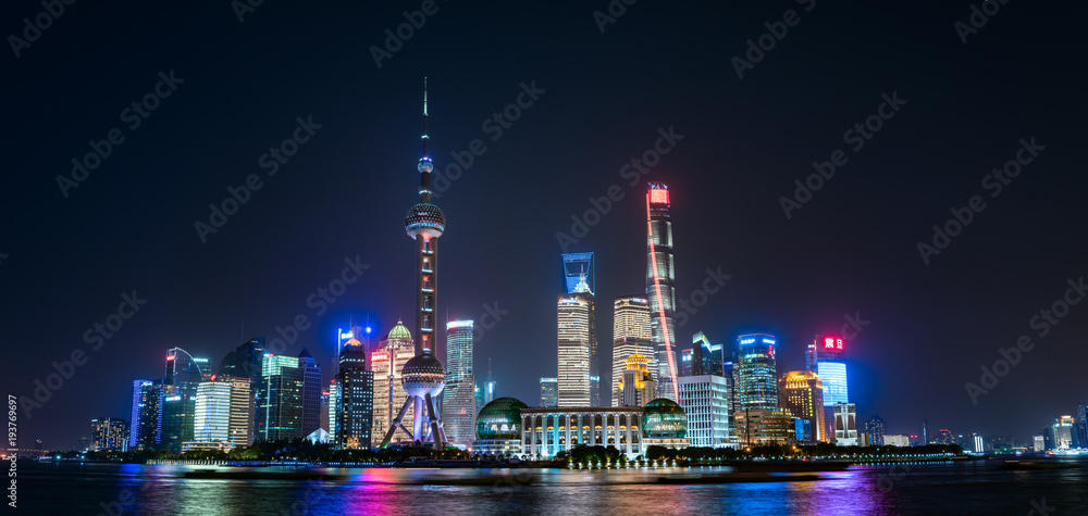 Fototapeta 中国・上海・陸家嘴の夜景 大パノラマ