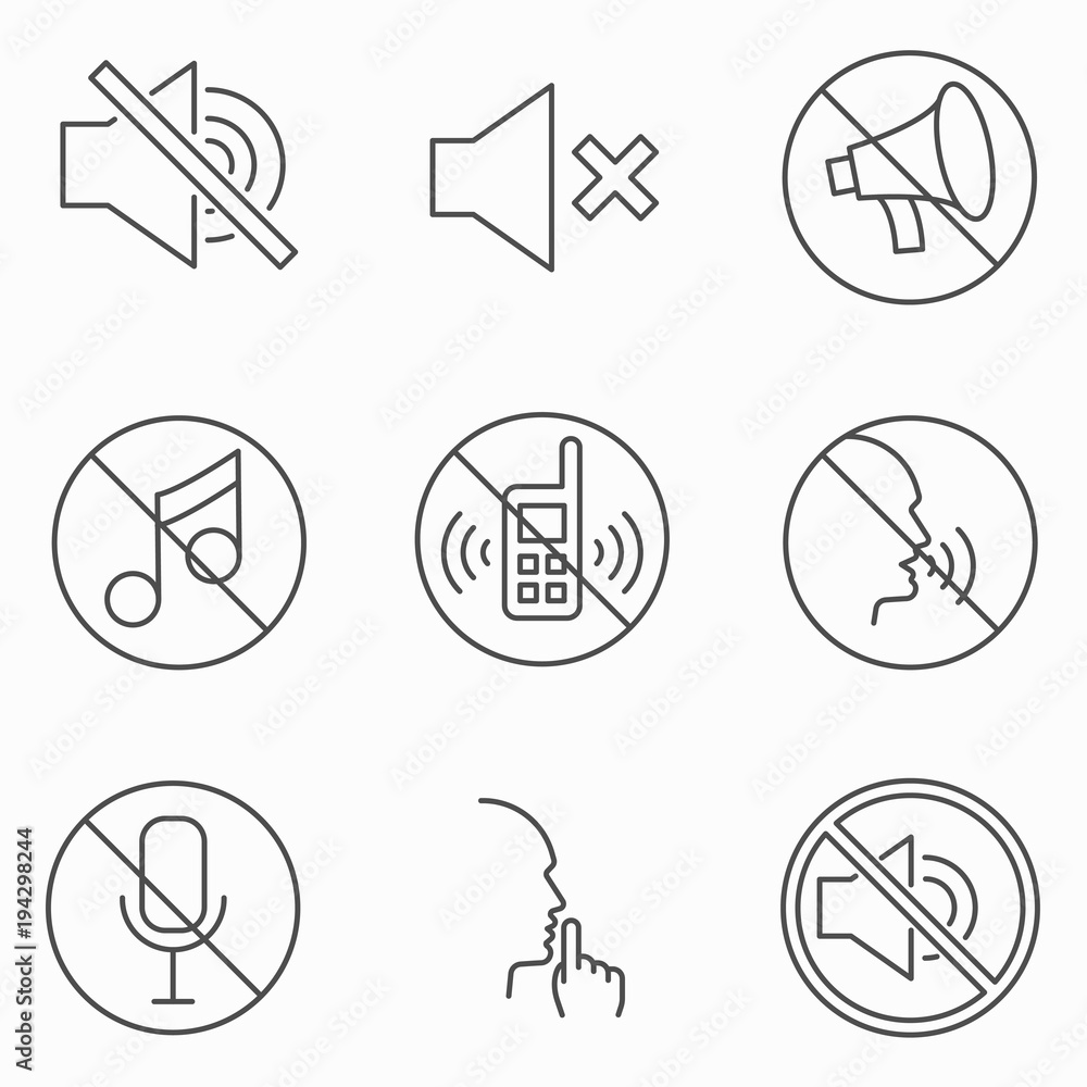 Fototapeta Set of keep silence signes. Line vector icons. Outline style