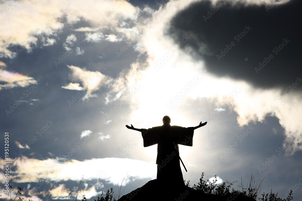 Fototapeta Silhouette monk on the mountain prayer moses faith god