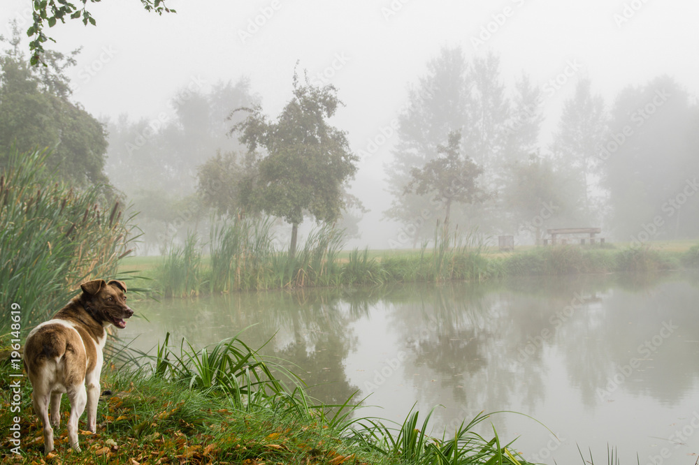 Fototapeta Dog at the fishpond