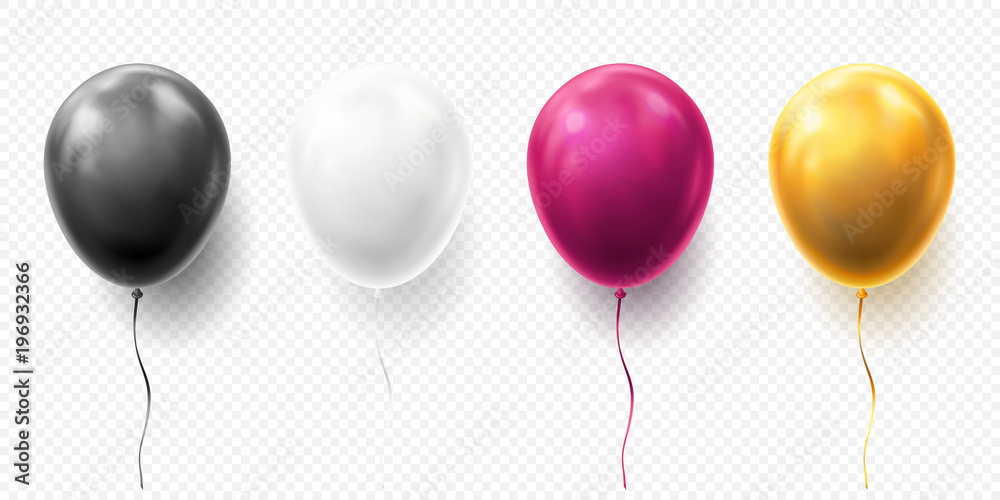 Fototapeta Realistic glossy golden, purple, black and white balloon vector illustration on transparent background