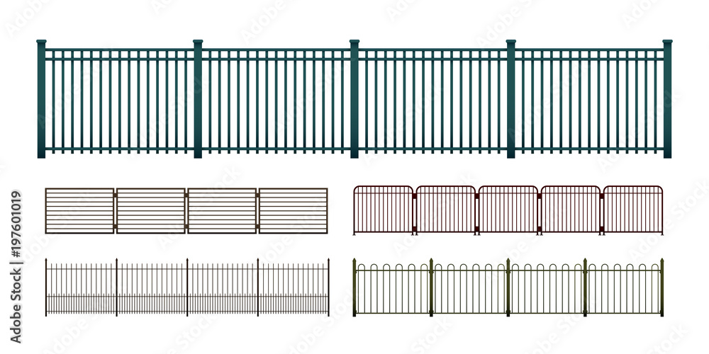 Fototapeta Painted metal fences isolated on white, vector set of various simple modular hor