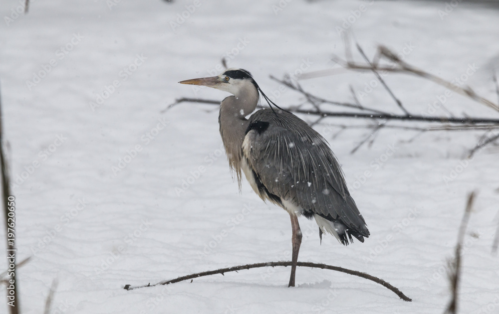 Fototapeta Grey heron in the snow