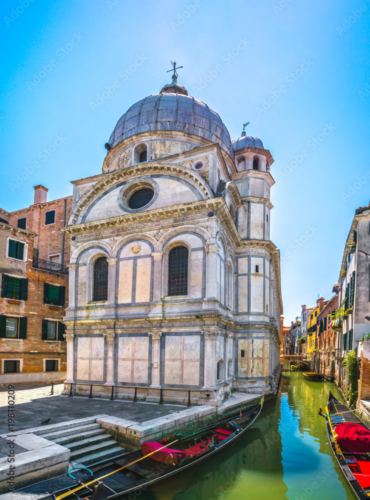 Fototapeta Venice church Santa Maria dei Miracoli, gondolas and water canal